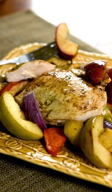 Cuando falte aproximadamente media hora para el final, añadir las manzanas que hemos reservado, cortadas por la mitad o en cuartos si prefieres, poner unos cubitos de mantequilla por encima y regar de vez en cuando.