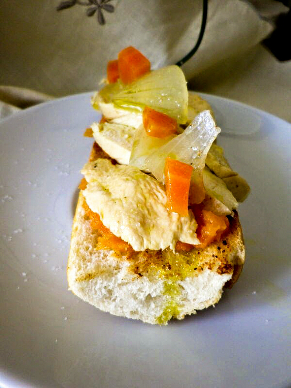 Aunque parece un entrante simple, el sabor es espectacular. Si quieres un resultado distinto puedes probar a utilizar pequeñas tostas en lugar de un trozo más grande, adornando con tomates cherry y algo de queso.