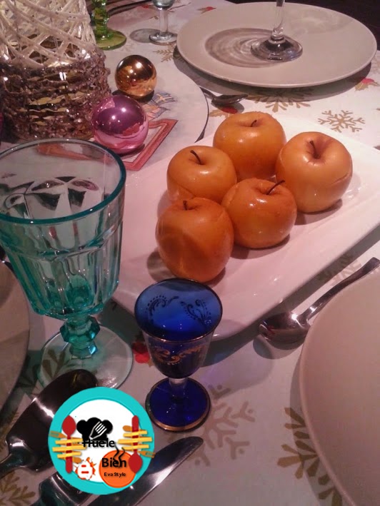 De primero serví un arroz negro con crema de calabaza y virutas de jamón serrano. El segundo plato fue una tarta de setas orejas de Judas. Para finalizar ofrecí un pavo al horno, sin relleno, con un puré de manzanas. Y de postre una charlota de turrón.