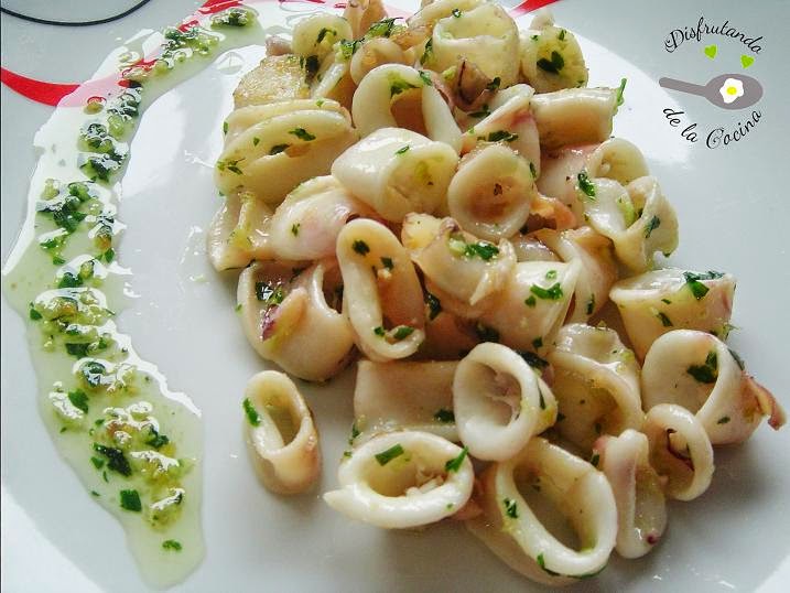 Disfrutando de la cocina, no s deja esta sencillísima receta de calamares, que a mi gusto, nos puede venir bien para bajar un poco la grasa del guiso de las patatas no? jejejeje