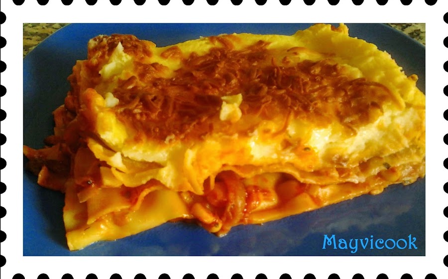 Como os decía más arriba, la idea del segundo plato era lasaña de berengenas, una para contentar a los peque por aquello de la pasta (mira que les gusta eh?) y otra para contentar a las mamis, poniéndole berebgenas jejejeje y por eso os dejo mi lasaña superfácil, que encima, como no tenía bechamel ni ganas de hacerla, lo hice con otra cosa...