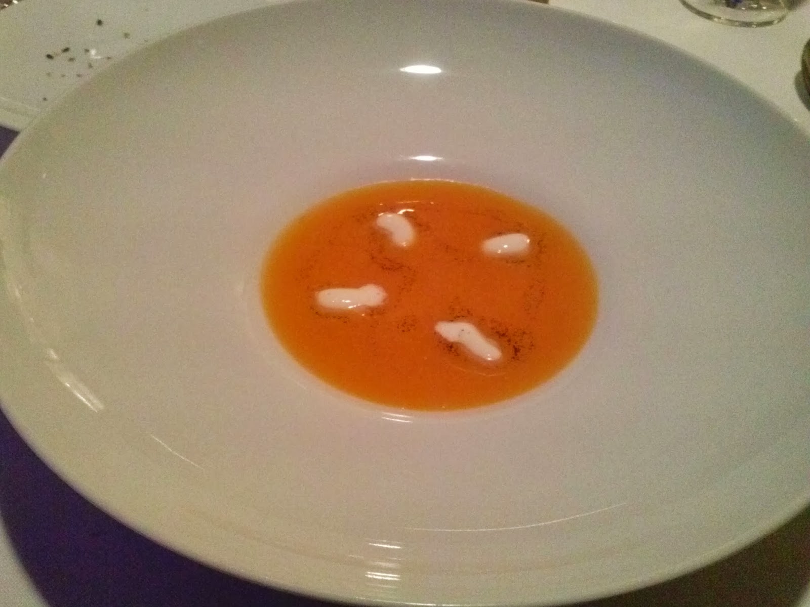 Crema de calabaza y mandarina con gnocchi de mascarpone