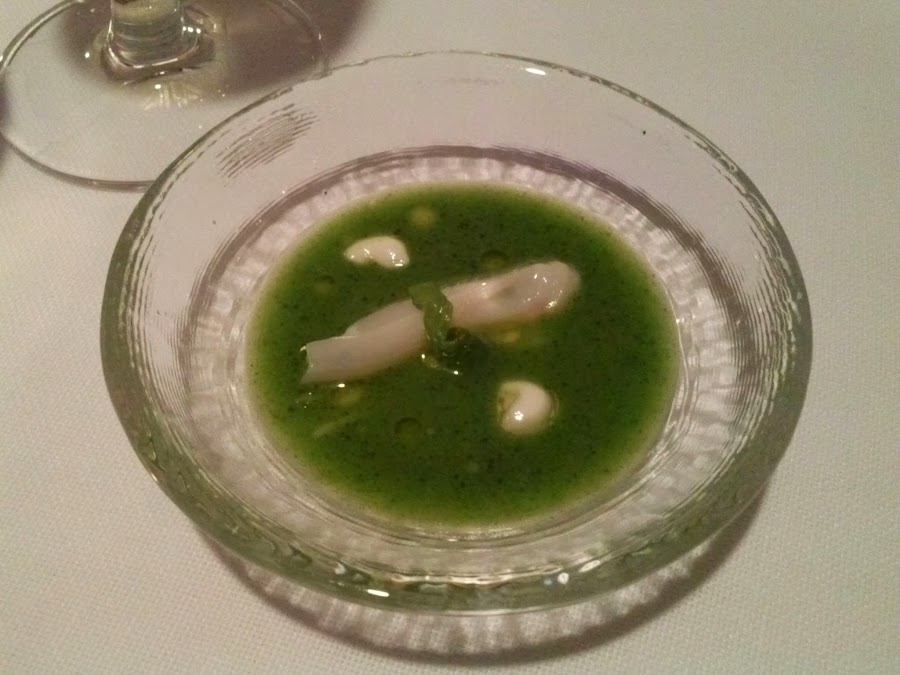 Crema de hierbas con navajas y emulsión de nata (crema de leche)