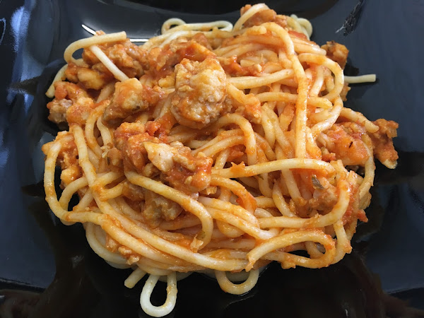 Espaguetis integrales con boloñesa de pollo