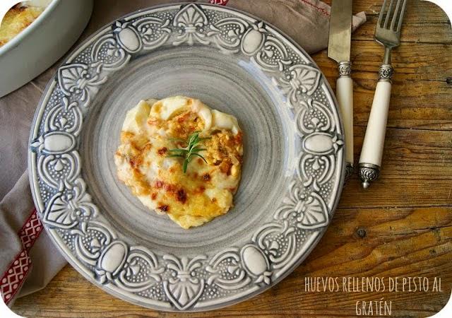 Mientras tanto iremos preparando el almuerzo. Y lo mejor para ir abriendo boca es tomar unos de estos huevos rellenos de pisto gratinados. A mi es una elaboración que me encanta y que vale la pena probar.