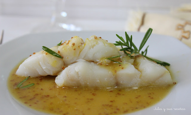 Necesitamos para elaborar este plato unos lomos de bacalao en su punto de sal que ya podéis encontrar en cualquier supermercado, mostaza antigua, miel, vino blanco, aceite , pimienta molida y mas ingredientes que podéis ver en mi blog Julia y sus rectas.