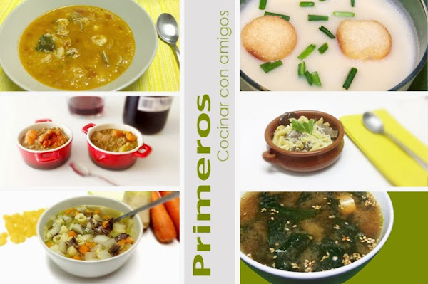 Os traigo platos de cuchara para que entréis en calor de una forma rápida. Podéis elegir entre una rica "Sopa de gambas y chirlas" que os puede valer como plato único a la hora de cenar, una "Crema Partmentier" ligera y deliciosa o unas "Lentejas estofadas con todo" un gran platazo (único) que te da energía para una semana completa. Y si os gusta la pasta los "Macarrones con caldo de Vivis" y la "Sopa minestrone" seguro que os encantan. Para terminar la selección de primeros os propongo una "Sopa miso" para los amantes de la cocina oriental, fácil y rica!