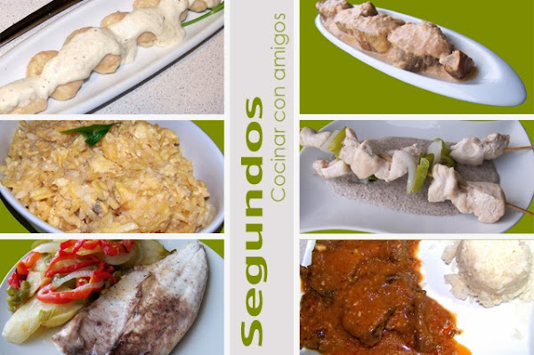 Para que no me digáis que no varío os propongo 3 recetas de pescado para todos los gustos, empezando por unos "Ñoquis de salmón" que quedan absolutamente deliciosos, seguimos con un "Bacalao a Brás" que combina pescado con huevo y por último un "Pescado con verduras al horno" una receta sencilla y ligera. Y otras 3 de carne, para los amantes del cerdo os traigo un "Solomillo de cerdo con salsa de brandy y almendras" que tendrás que acompañar con patatas o pan, tampoco olvidéis el pan para estas "Brochetas de pollo con salsa de champiñones" que son ligeras y muy sabrosas; y por último tenemos la clásica "Carne en salsa de mamá" la foto no hace justicia al nivel de esta receta, prometo reeditarla, pero probarla, os encantará.