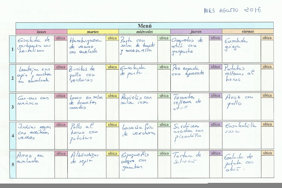 Aquí os dejo mi propuesta de menú para éste mes.