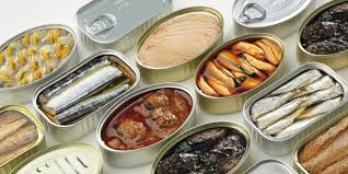 Latas de conserva de pescado como atún, caballa, mejillones...