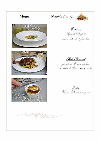 Es un menú de tres platos para disfrutar en la mesa con tus invitados.