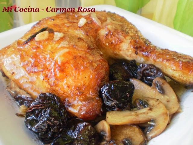 O BIEN POLLO AL ESTILO "CHICOTE" CON CHAMPIÑONES Y CIRUELAS PASAS