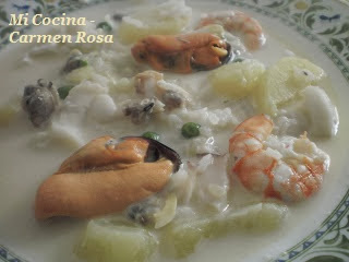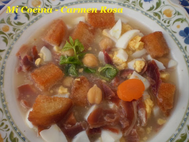 deliciosa SOPA DE MARISCO con rape, con su toque de almendras, ajo y pan frito, siempre supone un placer servirla acompañada de huevo duro?