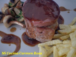 Pero a mis hijos les va más un SOLOMILLO DE TERNERA?en ésta ocasión con foie y un concentrado de carne y coñac?