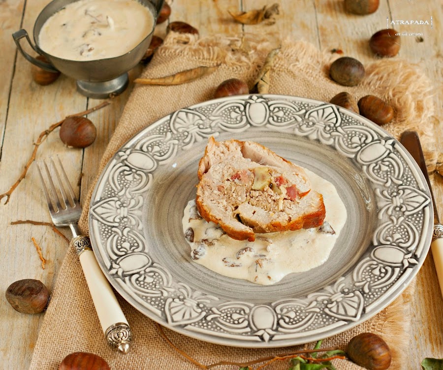Y como plato fuerte de la cena un lomo relleno de castañas con salsa de setas seguro que es un final de fiestas increible. Aunque todavía no hemos terminado, antes hay que tomar algo dulce, ¿no?.