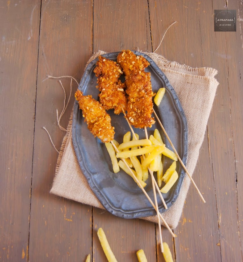 No debemos olvidarnos de los niños en estas fechas, así que sería conveniente introducir en el menú platos para los niños. Estos fingers de pollo caseros con kikos están de lujo y los niños se sentirán los reyes de la casa con ellos.