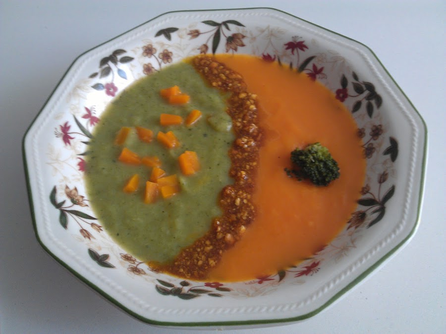 Y para terminar, os propongo una receta propia, esta crema bicolor, con un toque crujiente de kikos que la hace deliciosa, además de ser ligera y económica.