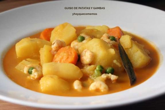 Este guiso de patatas y gambas es una receta de cuchara de lo más rica y saludable. Un plato reconfortante y muy completo. Para la cena