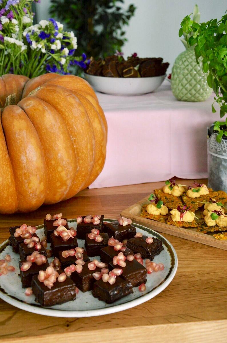 TIP: funde una tableta de chocolate con aceite de coco y cubre el brownie antes de que comience la fiesta, para que quede más brillante y jugoso. Decóralo con alguna fruta de temporada de colores vivos, que contraste con el chocolate. En este caso elegimos granada.