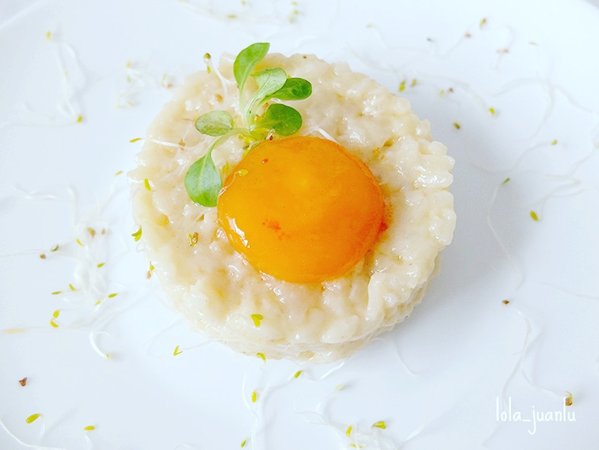 Risotto de Gorgonzola y pera con yema curada de huevo