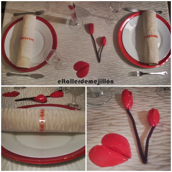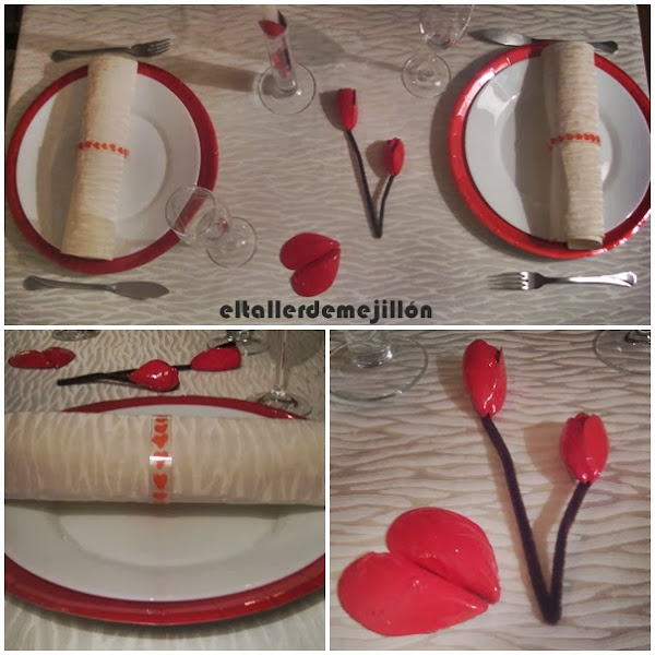 Y para adornar la mesa, corazones y flores hechos con...¡conchas de mejillón pintadas! ¿Os gustan?