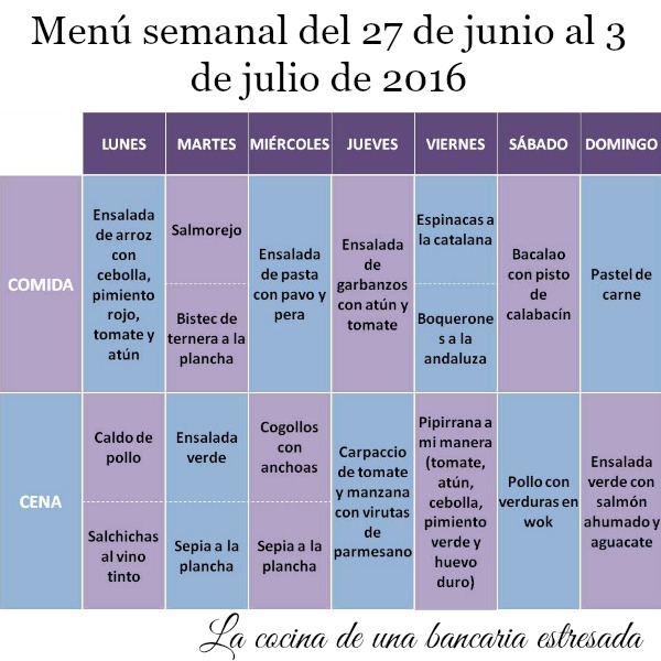 Pero aunque esté totalmente relajada comer he de comer, así que aquí estoy en mi cita semanal con vosotros, para ayudaros a planificar la semana.