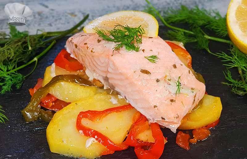 El salmón es uno de los pescados que más me agrada, como este salmón con patatas panaderas. ¿Por qué me encanta? Por su sabor y por sus propiedades, como es el alto contenido en omega 3. Un ácido graso beneficioso para el corazón, el sistema circulatorio y reparación de tejidos, entro otros.Viernes