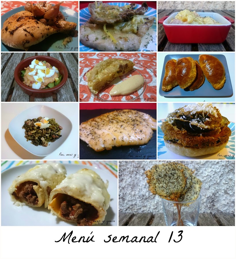 CENA Ensalada alemana Pollo a la mostaza con patatas asadas con mantequilla y ajos Tomates asados al ajo Patatas asadas con pimentón y hierbas Piruletas de Parmesano y semillas Tortilla soufflé con mayonesa de tomate Empanadas saladas de brioche