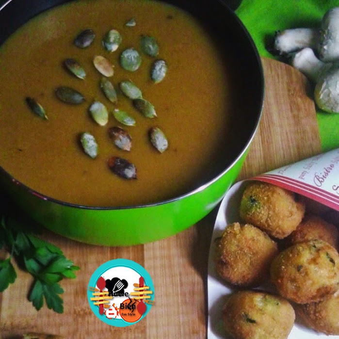 Sólo espero que mi propuesta para el día de hoy os guste. Es un menú muy completo y desde muy punto de vista no es muy complicado; crema de verduras con pipas de calabaza. Croquetas de pollo al curry y de postre pastel de queso con fruta de temporada.