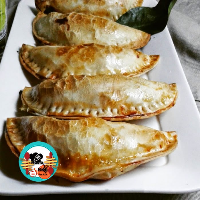 También podemos cocinar la mezcla del pastel, envueltas en obleas, pincelamos con un huevo batido, después de unos minutos con aceite de oliva y horneamos 20 minutos hasta que estén doradas.