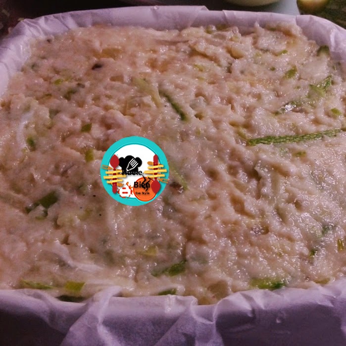 1.- Lavamos y picamos bien fino el calabacín y reservamos. Pelamos la cebolla y lavamos el puerro, lo picamos y sofreímos con un poco de aceite de oliva unos 7 minutos. En una picadora, ponemos la fritura, el pescado cortado en trozos, la nata (crema de leche), los huevos salpimentamos y trituramos todo. Después añadimos el calabacín picado.
