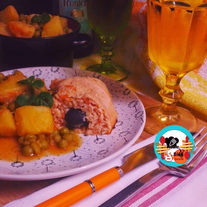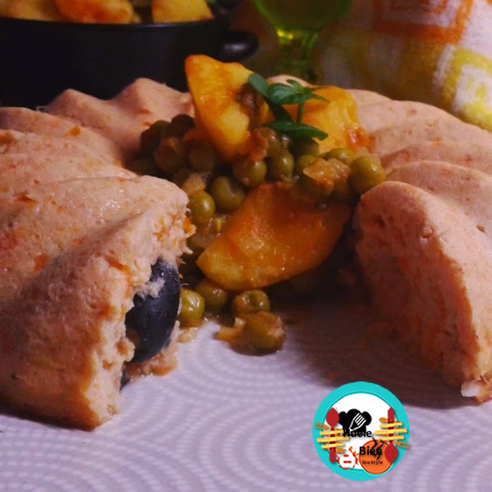 2.- En el vaso de la batidora ponemos ponemos el sofrito y la miga de pan escurrida, los huevos 2 cucharadas de tomate frito y la salsa inglesa. Trituramos todo hasta obtener una mezcla homogénea. Salpimentamos, añadimos las aceitunas. La vertemos en un molde con rosca. Lo cocemos al baño María, en el horno precalentado a 200ºC, unos 35 hasta que cuaje. Dejamos entibiar y desmoldamos.