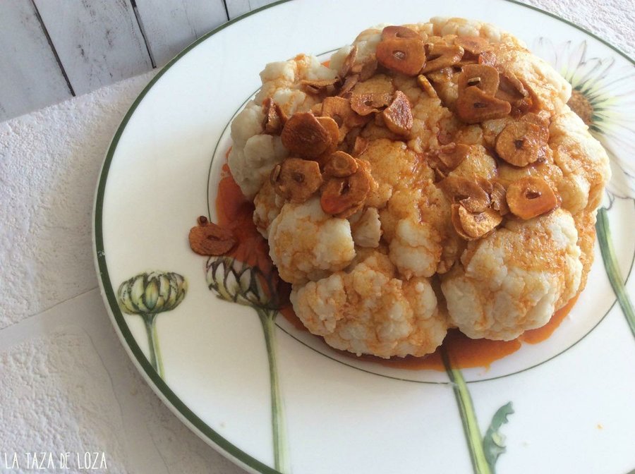 Otro plato estupendo de origen vegetal y con mucho sabor esta coliflor que nos presenta La Taza de Loza. Se prepara en un momento, tan solo hay que cocer la coliflor y rehogarla después en un aceite donde habremos frito unos ajos y pimentón. Una receta sabrosa y sencilla para nuestro menú.