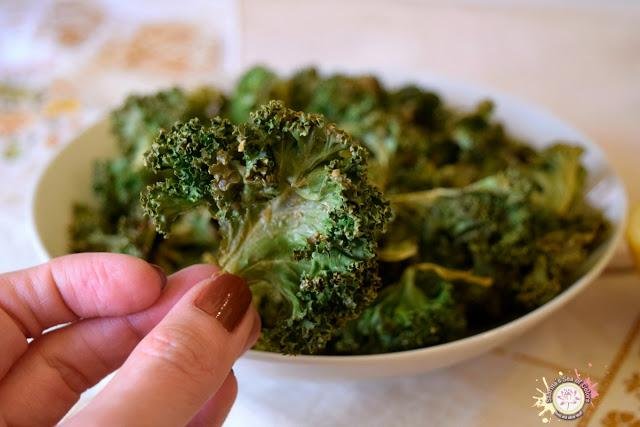 Sabrina of Colors nos deja unos chips vegetales muy apetecibles, elaborados con un super alimento como es el Kale, una especie de coliflor con numerosas propiedades. El proceso es muy sencillo, sazonamos las ramitas de kale con limón, ajo, sal y tahini y los dejamos secar en el horno. Un snack diferente y de lo más sugerente. ¿Te animas a prepararlo?