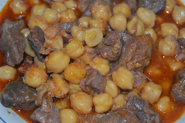 Carrilladas o carrilleras, y aquí como nos lo comemos todo también las llamamos carrillá. El menudo jerezano supongo que lo conocéis, son los callos con garbanzos, pues esta es una versión de esta típica receta jerezana. Ya sabéis que la carrillá es una carne muy gelatinosa y tierna... pues hace un tándem genial con los garbanzos y todos sus avíos.