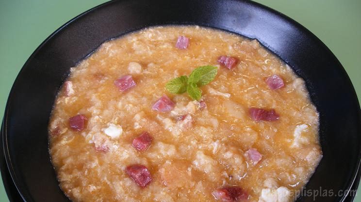 Sopa de pan con jamón e Higados de ave a la Provenzal