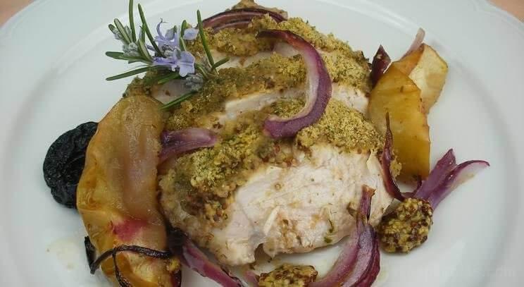 Solomillo de pavo a la mostaza y Ensalada de crudités