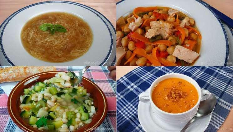 Sopa de alubias con calabacin y Jamoncitos de pollo con uvas