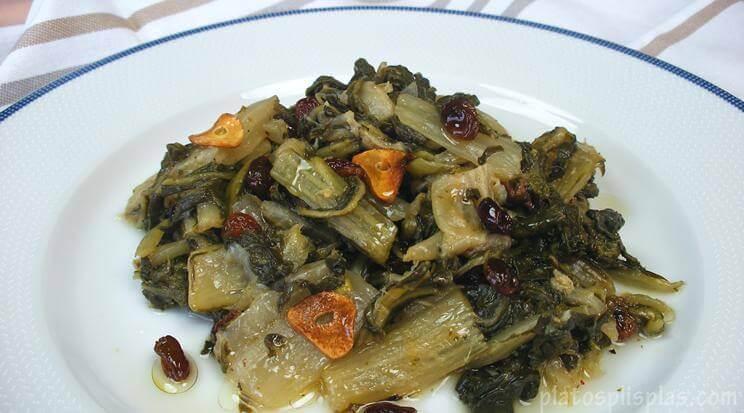 Acelgas rehogadas y Fajitas de pollo
