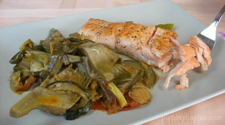 Salmón con verduras y Ensalada isleña