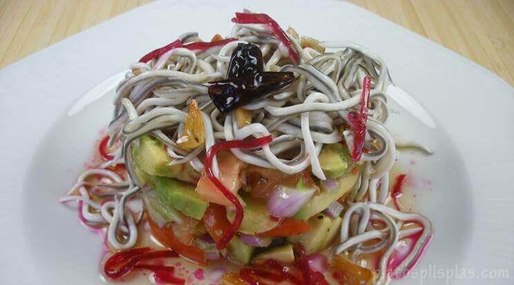 Timbal de aguacate y angulas sucedáneas