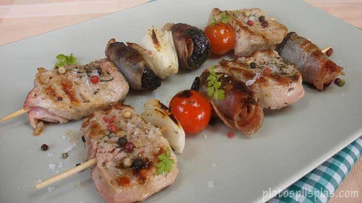 Brochetas de solomillo y Espárragos a la parrilla
