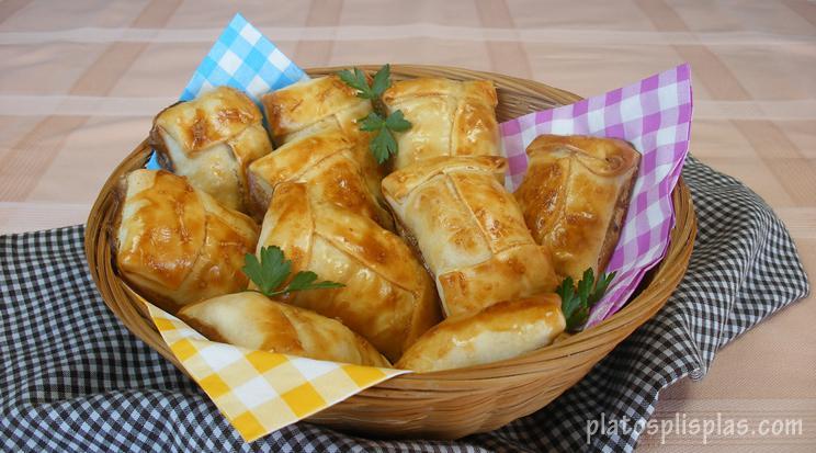 Empanadillas de pollo y Timbal de aguacate y angulas sucedáneas