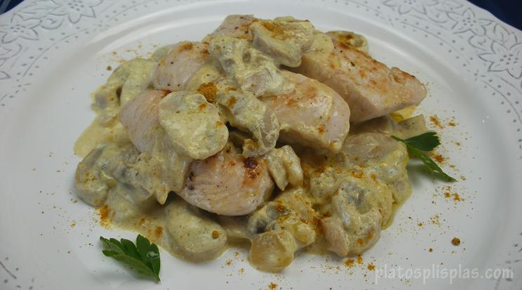 Escalopines de pavo al curry y Menestra de verduras