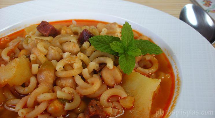 Fideos con garbanzos y Ensalada de alcachofas