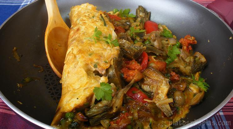 Tortilla de verduras y chorizo y Ajoblanco