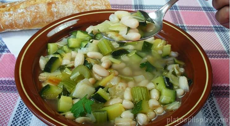 Sopa de alubias con calabacin y Sardinas con ajo y perejil