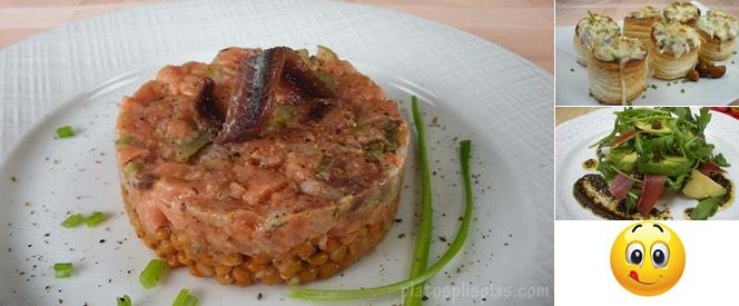 Tartar de salmón con lentejas y Volovanes rellenos de setas