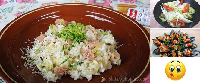 Risotto de calabacín y atún y Ensalada verde