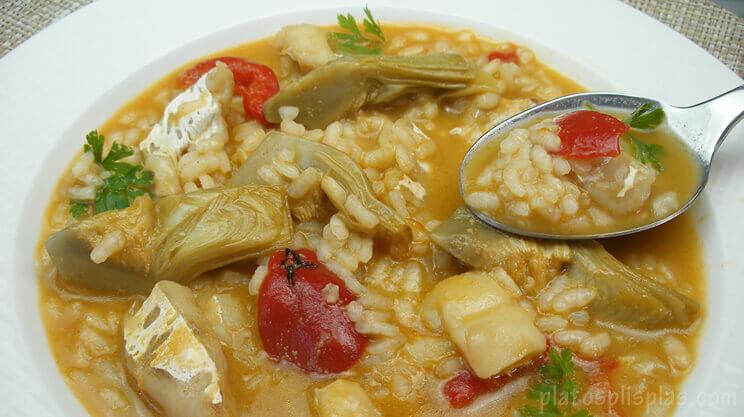 Arroz caldoso con bacalao y Espárragos a la pimienta